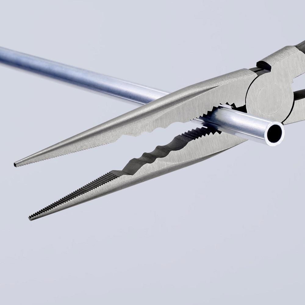 mit Querprofilen · für Greif-, Justier- und Montagearbeiten an schwer zugänglichen Stellen · flach-runde Greifspitzen · besonders geeignet für Arbeiten im Kfz-Gewerbe (z. B. im Motorraum), in der Montage und im Maschinenbau · geschmiedet aus Spezialwerkzeugstahl · in Öl gehärtet