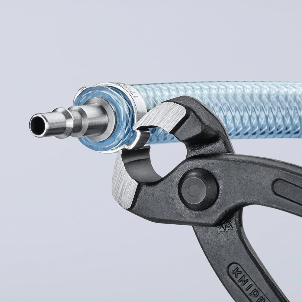 zum einfachen und zuverlässigen Befestigen von 1-Ohr- und 2-Ohrklemmen (System Oetiker oder ähnlich) · vielfältig einsetzbar für Klemmen an Achsmanschetten, Kühler- und Kraftstoffleitungen, Luftdrucksystemen, Kompressoren · Spezial-Werkzeugstahl in Sondergüte, geschmiedet, ölgehärtet