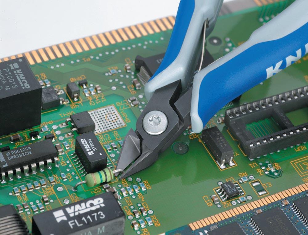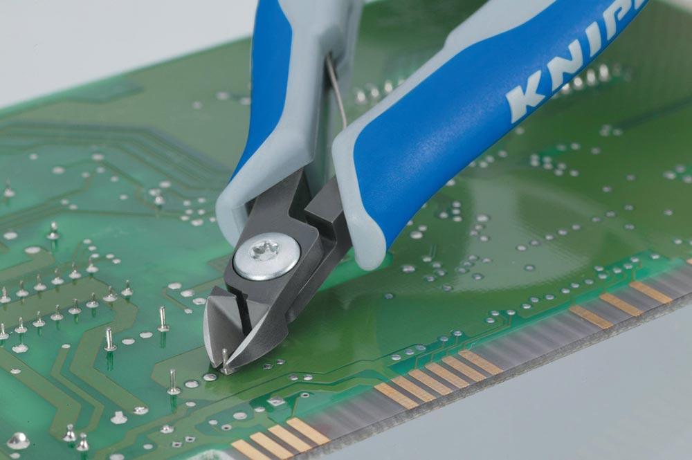 für feinste Schneidarbeiten z. B. in Elektronik und Feinmechanik · geschliffene, scharfe Schneiden · Schneiden zusätzlich induktiv gehärtet, Schneidenhärte ca. min. 64 HRC · ca. 20% weniger Gewicht · geschraubtes Gelenk · Öffnungsfeder · Chrom-Vanadin-Kugellagerstahl, geschmiedet, mehrstufig ölgehärtet
