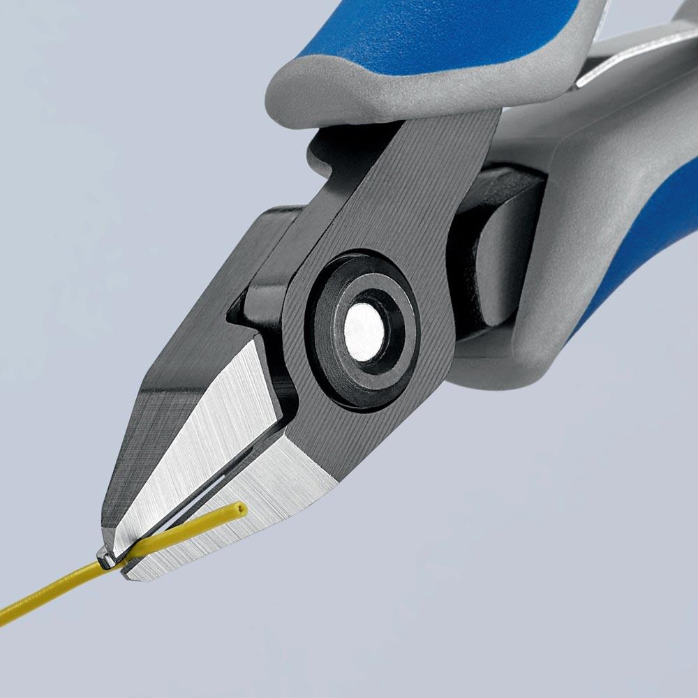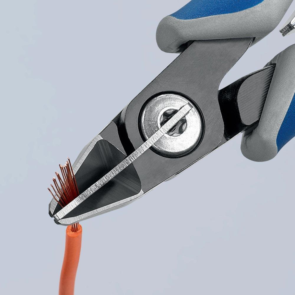 für feinste Schneidarbeiten z. B. in Elektronik und Feinmechanik · geschliffene, scharfe Schneiden · Schneiden zusätzlich induktiv gehärtet, Schneidenhärte ca. min. 64 HRC · ca. 20% weniger Gewicht · geschraubtes Gelenk · Öffnungsfeder · Chrom-Vanadin-Kugellagerstahl, geschmiedet, mehrstufig ölgehärtet