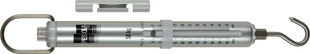 metrisch · genaue handliche Federwaage mit robustem, eloxiertem und abriebfreiem Aluminiumrohr sowie langer Präzisionsskala mit hoher Auflösung · Tara- und Nullstellvorrichtung sowie dreh- und schwenkbarer Aufhängebügel · Haken dreh- und schwenkbar, sowie durch verschiedenes Zubehör austauschbar · Aufhängeelemente aus Inox · Schleppzeiger (z.B. für stehende Anzeige bei Zerreissproben bis maximal 30 kg) und handlicher, abnehmbarer Handgriff im Lieferumfang enthalten · Messmittel zur Gewichtsbestimmung und Zugkraftmessung