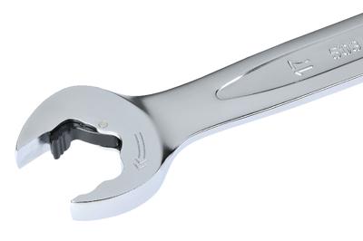 Ausführung: Aus Chrom-Vanadium-Stahl, sehr fein satiniert ∙ Professioneller Ratschenmechanismus "FlankTraction-Profil" ähnl. DIN 3113/ISO 3318 mit exakt Verzahnung mit 72 Zähnen ∙ Rechts-/Links-Umschaltung ∙ Rngseite 15° abgewinkelt ∙ Maulstellung zusätzlich mit Ratschenfunktion 15° abgewinkelt