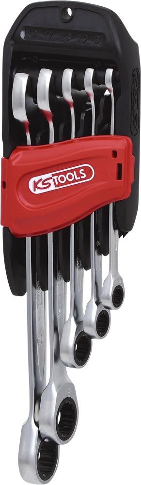 Produktinformationen "Ratschenringmaulschlüssel-Satz GEARplus, 5tlg., 8-19 mm, Klemmhalter"