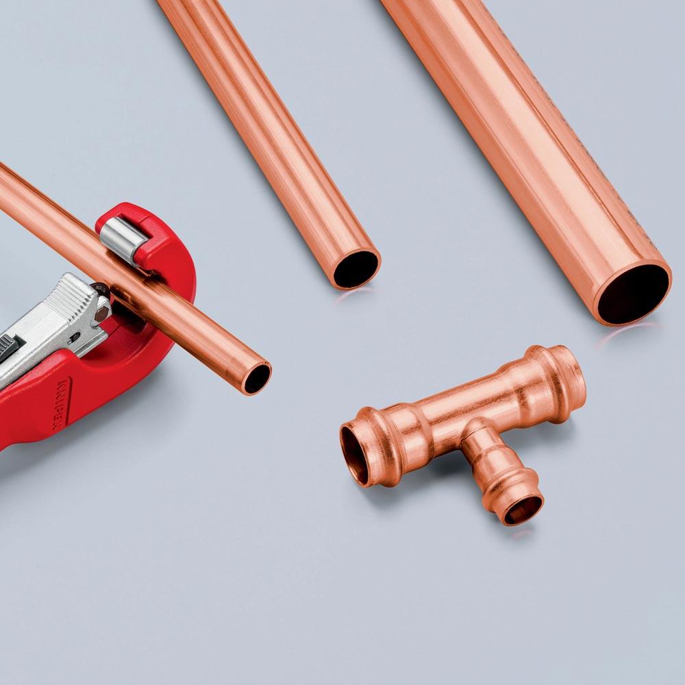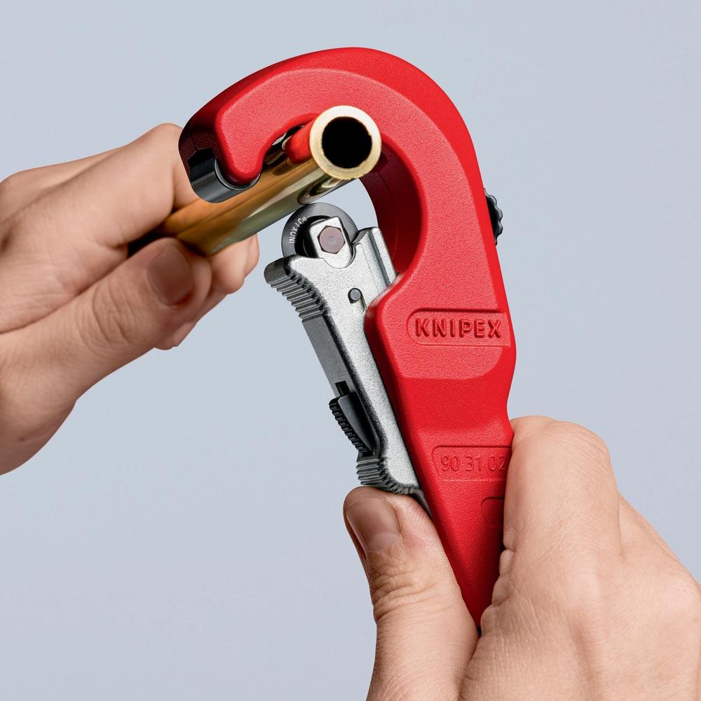 schneller, präziser und leichter: Kupfer-, Messing- und Edelstahlrohre bis 2 mm Wandstärke trennen · QuickLock-Einhandschnellfixierung: selbstständiges Halten und Klemmen am Rohr · schnelles und präzises Positionieren des Schneidrades an unterschiedliche Rohrdurchmesser · Körper aus Magnesium · Schlitten und Schieber aus Zink-Druckguss · 4 nadelgelagerte Führungsrollen aus INOX-Stahl · nadelgelagertes und abgefedertes Schneidrädchen Ø 19 mm aus hochwertigem Kugellagerstahlstahl · mit präzise geschliffenem Entgrater, einfach zu entnehmen · pulverbeschichtet · Schneidrad-Schnellwechselsystem, mit Ersatz-Schneidrad im Griffknauf