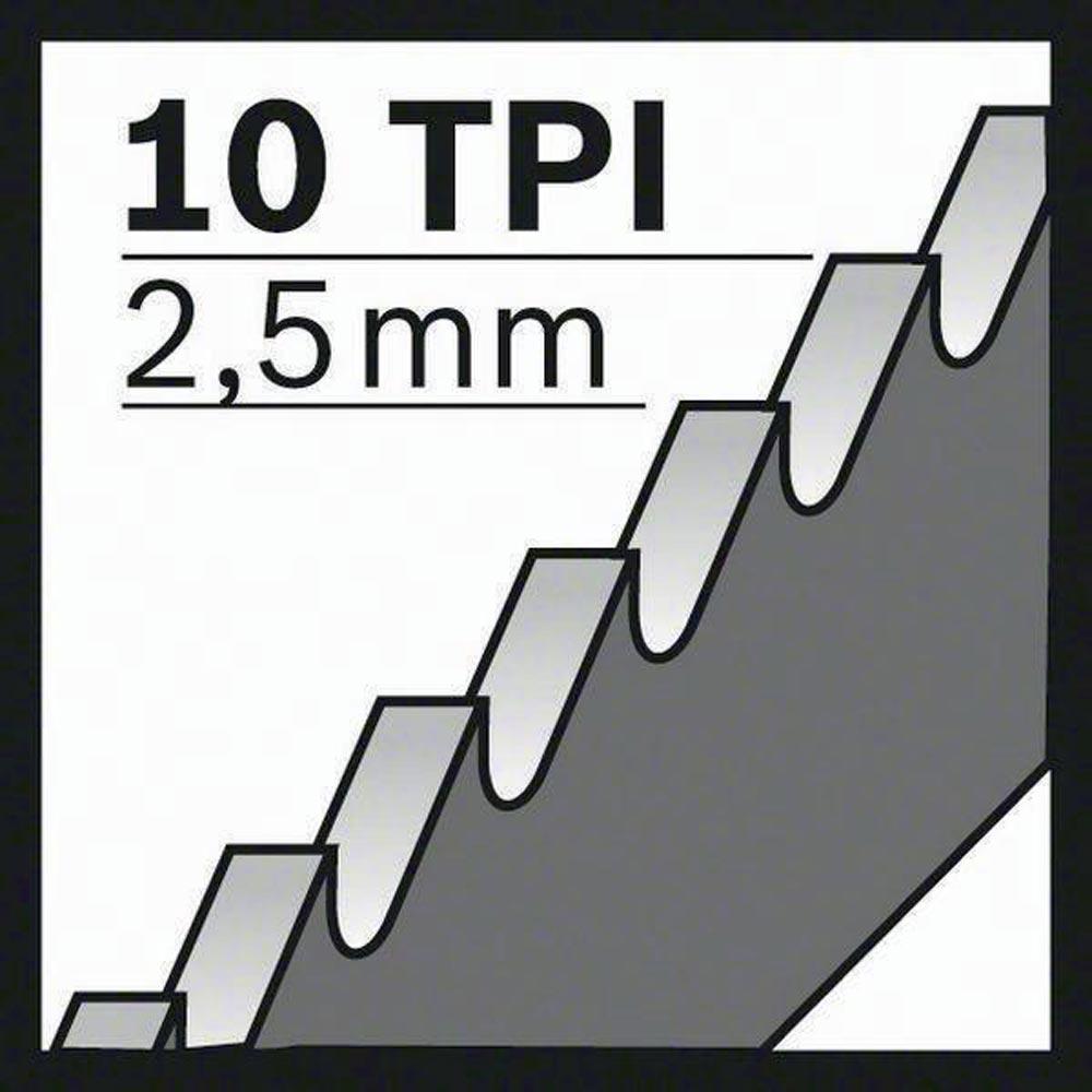 Produktinformationen "Säbelsägeblatt S 1122 HF Länge 225 mm Breite 19 mm Zahnteilung TPI 10 2,5 mm geschränkt, gefräst 5 Stück / Karte"
