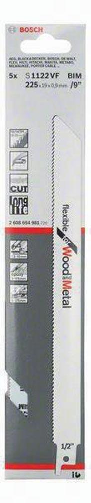 Säbelsägeblatt S 1122 VF Länge 225 mm Breite 19 mm Zahnteilung TPI 10-14 1,8 - 2,6 mm varioverzahnt 5 Stück / Karte