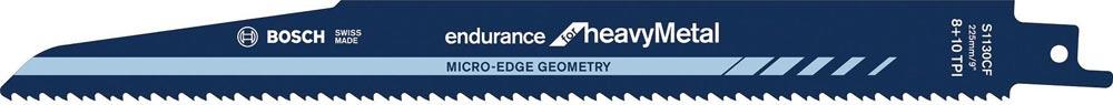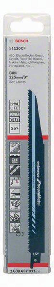 Säbelsägeblatt S 1130 CF. Endurance for Heavy Metal. Werkstoff: BIM. Micro-Edge Geometry · patentierte 2x2 Tooth Geometry. Einsatzbereiche: Für starke Bleche (von 4 bis 12 mm Stärke) · für dickwandige · massive Rohre und Profile (kleiner als 175 mm Stärke). Ideal für Rohrschneidevorrichtung und für Rettungs-/Abbrucharbeiten. Kraftvoller · grober Schnitt. Inhalt der Verkaufsverpackung: 25 Stück.