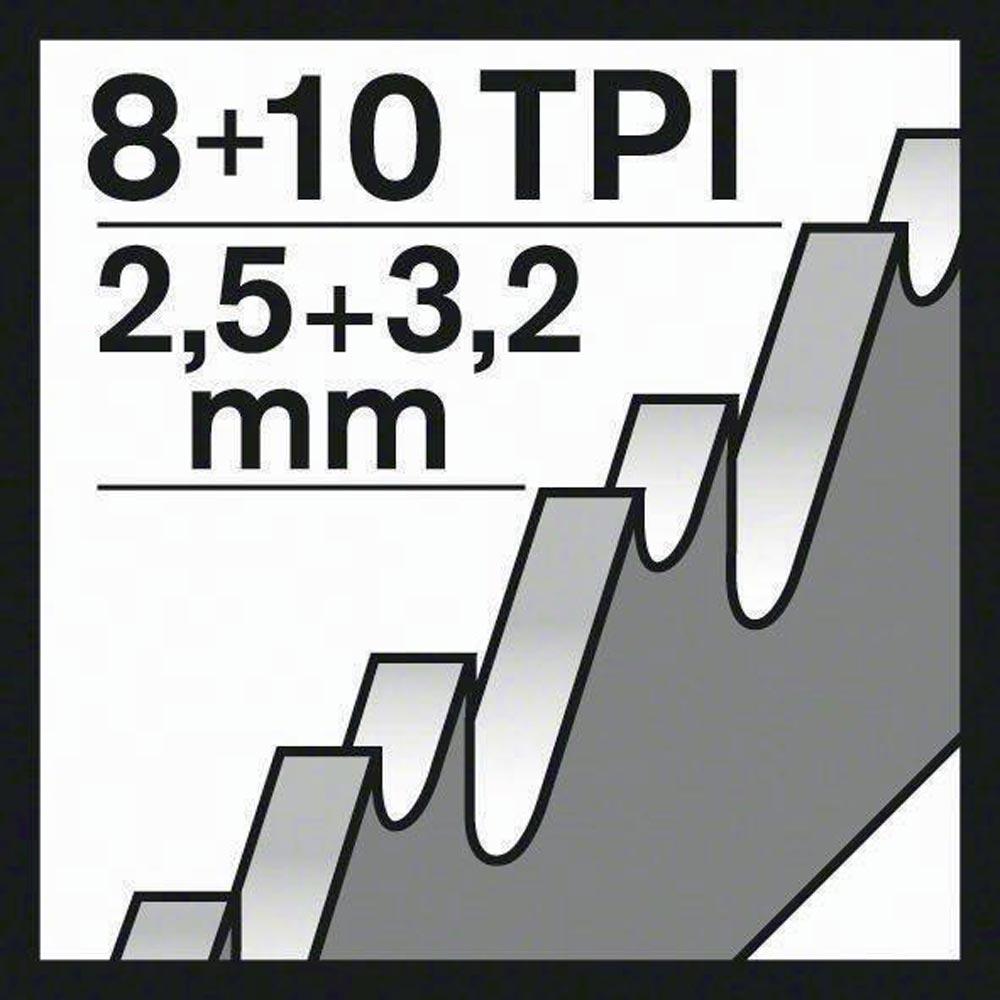 Produktinformationen "Säbelsägeblatt S 1130 CF Länge 225 mm Breite 22 mm Zahnteilung TPI 8+10 2,5+3,2 mm 2 x 2 Geometrie 25 Pack"