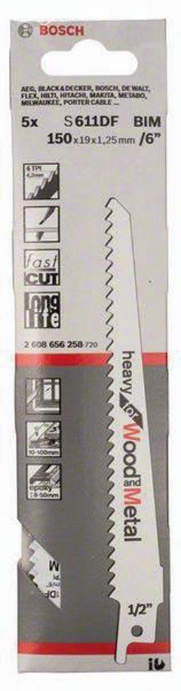 Produktinformationen "Säbelsägeblatt S 611 DF Länge 150 mm Breite 19 mm Zahnteilung TPI 6 4,3 mm geschränkt, gefräst 5 Stück / Karte"