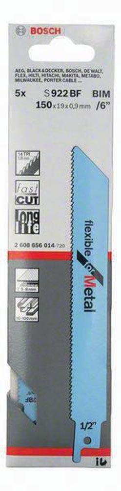 Produktinformationen "Säbelsägeblatt S 922 BF Länge 150 mm Breite 19 mm Zahnteilung TPI 14 1,8 mm geschränkt, gefräst 5 Stück / Karte"