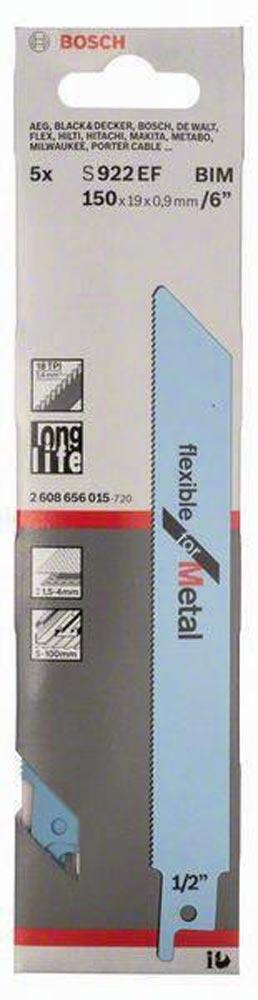 Produktinformationen "Säbelsägeblatt S 922 EF Länge 150 mm Breite 19 mm Zahnteilung TPI 18 1,4 mm geschränkt, gefräst 5 Stück / Karte"