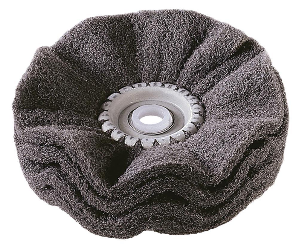 bestehend aus Nadelvliesmaterial mit Schleifkorn · Einsatzgebiete: leichte Schleifarbeiten, Entzundern, Desoxidieren, Mattieren, Entfernen von Lacken und Farben · geeignete Materialien: Stahl, Edelstahl, NE-Metalle, Kunststoff, Holz, Keramik, Glas - sowohl für Trocken- als auch für Nasseinsatz geeignet · einsetzbar für Bohrmaschinen, biegsame Wellen, Winkelpolierer und Schleifböcke bei Schnittgeschwindigkeit von ca. 15 - 20 m/sek