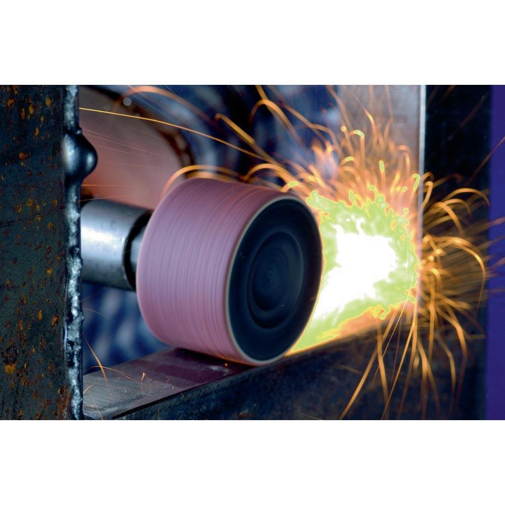 · Vorteile: Höchste Wirtschaftlichkeit durch besonders hohen Materialabtrag und hohe Aggressivität des Schleifmittels. Herausragende Standzeit durch spezielles Fertigungsverfahren – auch unter härtesten Einsatzbedingungen. Sicherer Sitz der Schleifhülse auf dem Schleifhülsenträger durch Ausdehnen des Trägers im Einsatz.