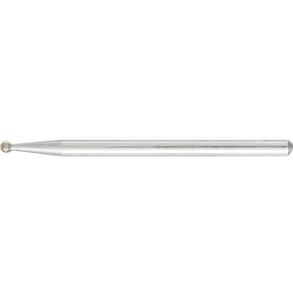 Kugelform · galvanisch gebundenes Diamantwerkzeug · zum Gravieren, Schleifen von Konturen und Entgraten geeignet · zur Bearbeitung von Hartmetall, Glas, Keramik, Porzellan, feuerfesten Werkstoffen, Ferrit, Silicium, Graphit, Gummi usw. · die Kugelform wird häufig im handgeführten Einsatz genutzt · empfohlene Umfangsgeschwindigkeit Vc =