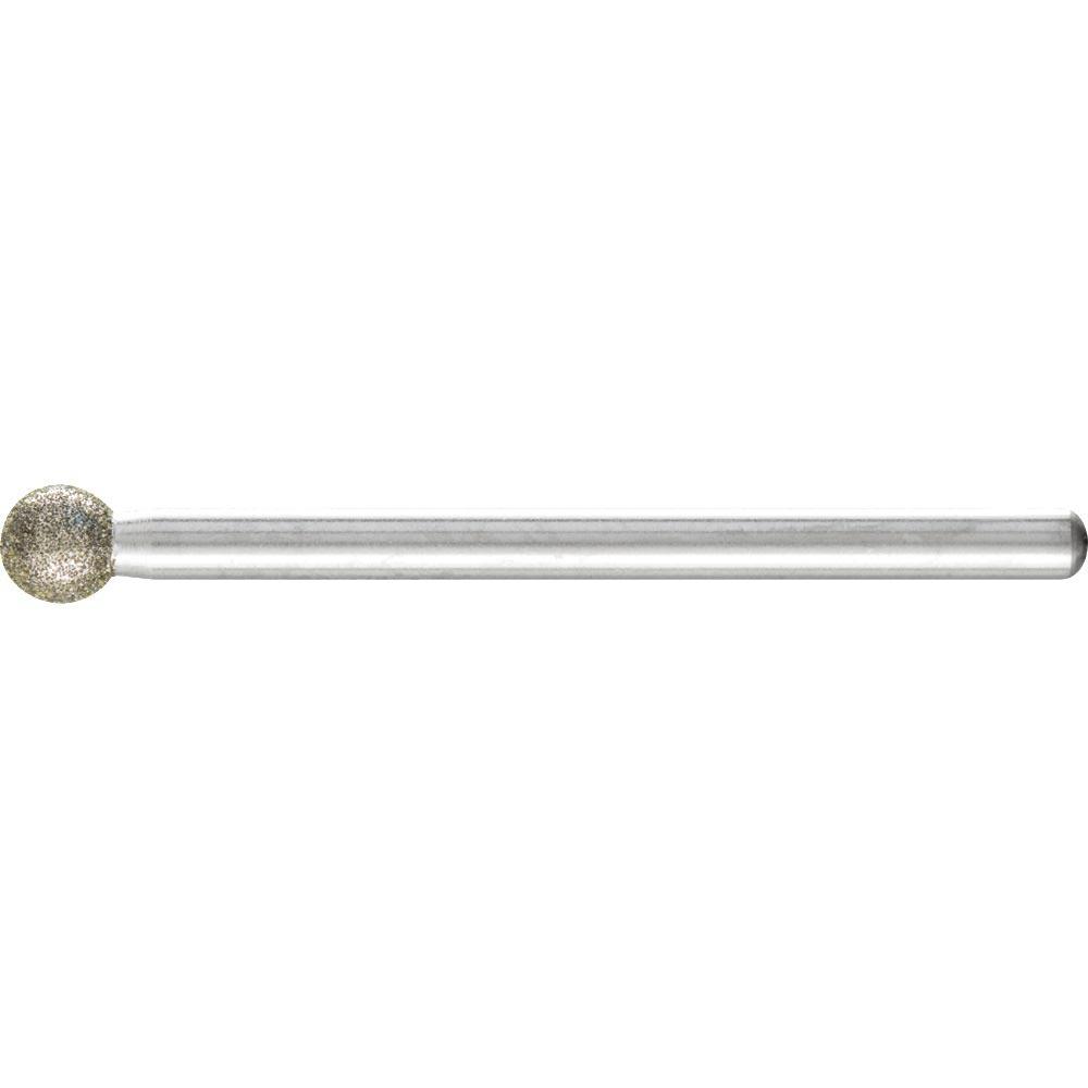 Kugelform · galvanisch gebundenes Diamantwerkzeug · zum Gravieren, Schleifen von Konturen und Entgraten geeignet · zur Bearbeitung von Hartmetall, Glas, Keramik, Porzellan, feuerfesten Werkstoffen, Ferrit, Silicium, Graphit, Gummi usw. · die Kugelform wird häufig im handgeführten Einsatz genutzt · empfohlene Umfangsgeschwindigkeit Vc =