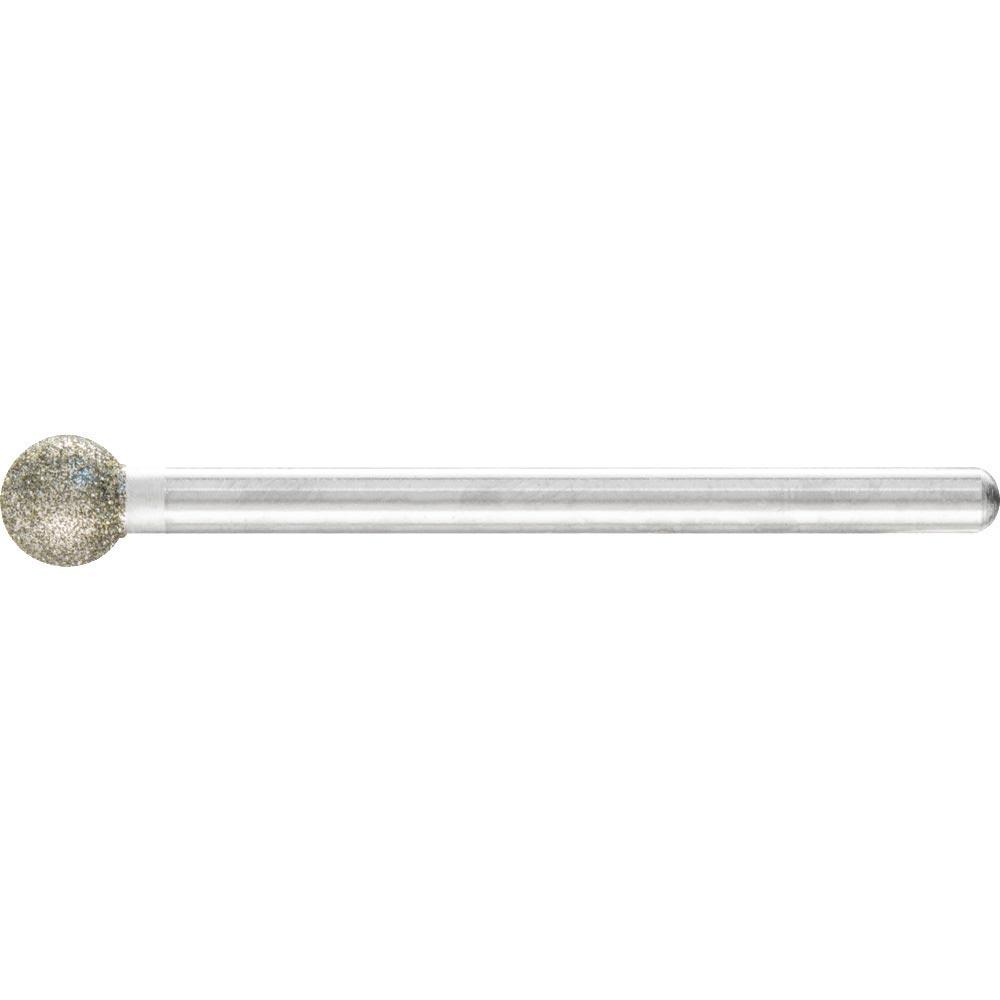 Kugelform · galvanisch gebundenes Diamantwerkzeug · zum Gravieren, Schleifen von Konturen und Entgraten geeignet · zur Bearbeitung von Hartmetall, Glas, Keramik, Porzellan, feuerfesten Werkstoffen, Ferrit, Silicium, Graphit, Gummi usw. · die Kugelform wird häufig im handgeführten Einsatz genutzt · empfohlene Umfangsgeschwindigkeit Vc =