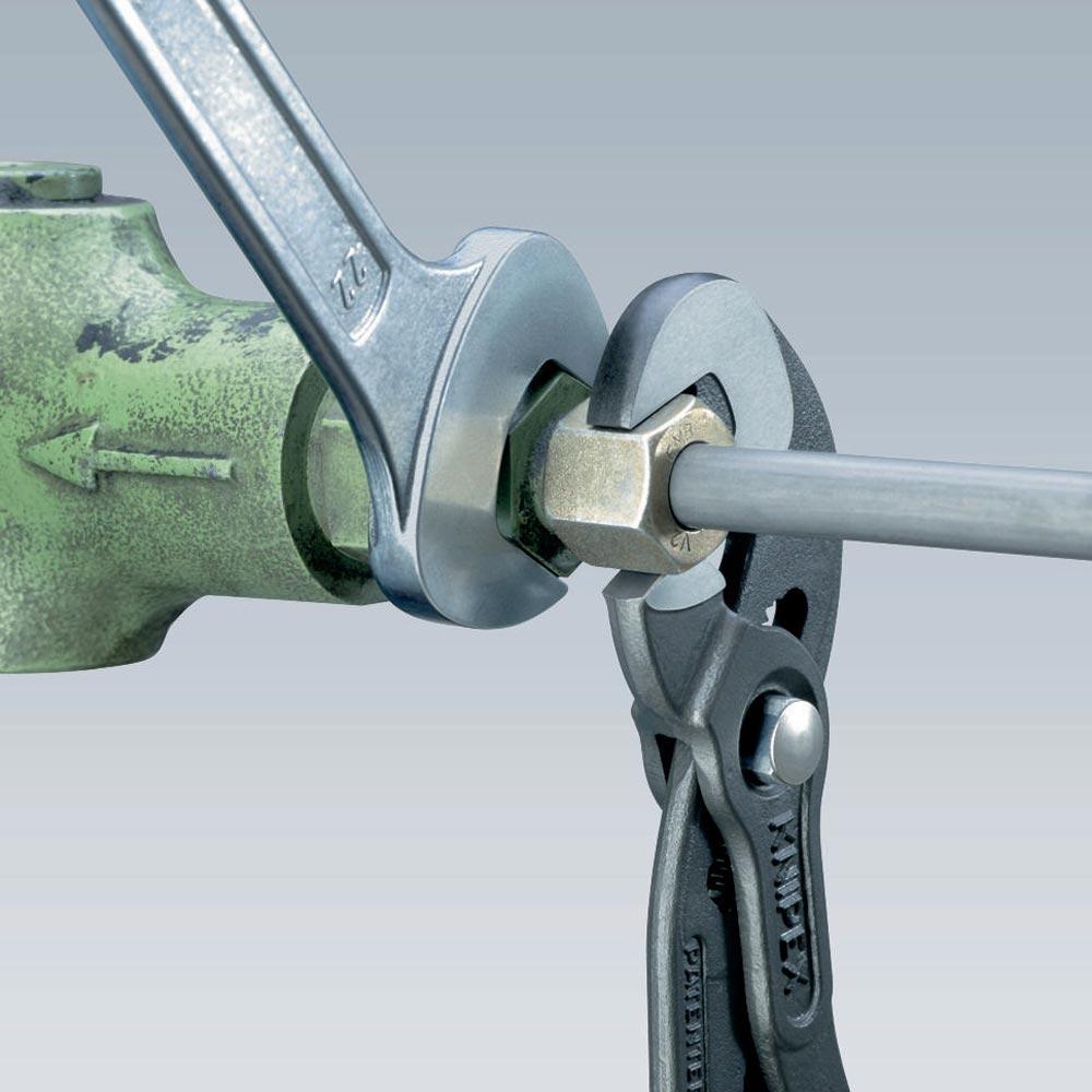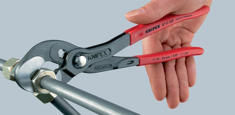schnellverstellbar · 15 Einstellpositionen · Arbeiten nach dem Ratschenprinzip · sicheres Greifen verrundeter, verrosteter oder überlackierter Muttern · selbstklemmend ab 17 mm · Chrom-Vanadin-Elektrostahl, geschmiedet, mehrstufig ölgehärtet