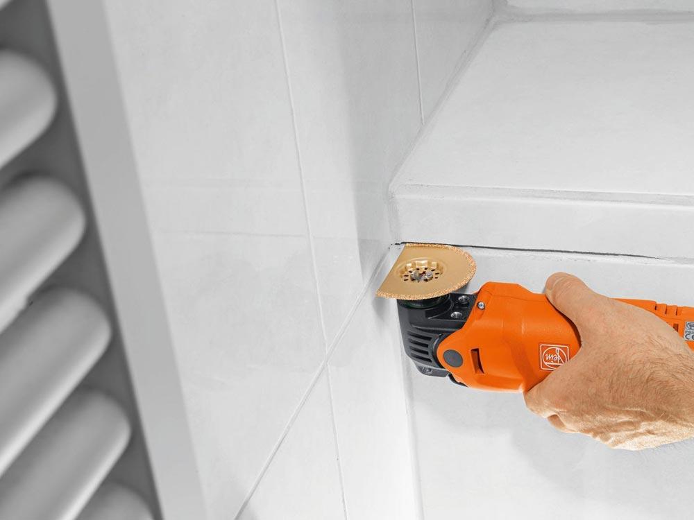 zum Austrennen schadhafter Fliesenfugen · auch zum Fräsen von Schlitzen in Putz, Gasbeton und ähnlichen Baumaterialien sowie zur Reinigung und Nacharbeit von Stabdecksfugen · nicht für sehr harte Epoxid- oder Zementfugen geeignet · die wirtschaftliche Alternative zu Diamant-Werkzeugen