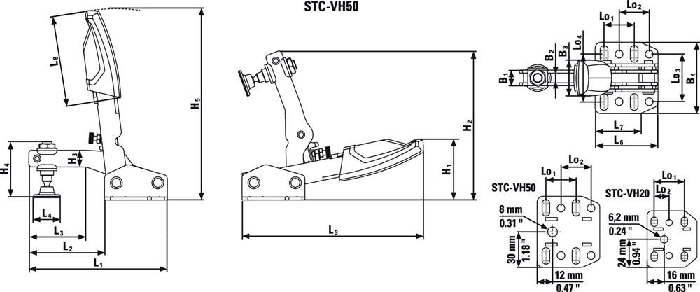 Produktinformationen "Senkrechtspanner STC-VH Größe 20 waagrechter Fuß"