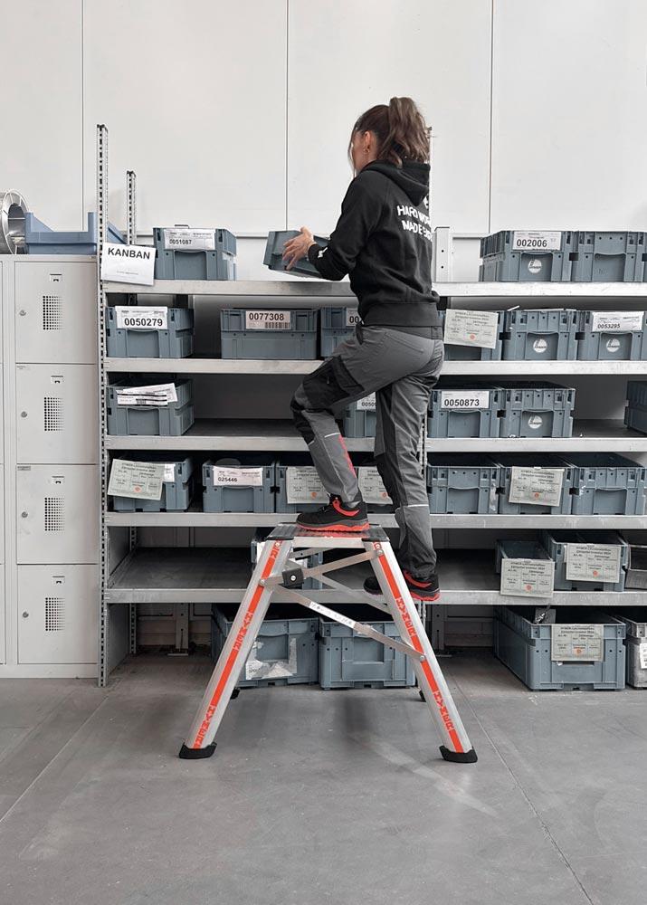 Produktinformationen "Service- und Montagetritt aus Aluminium, 2x4 Stufen, Standhöhe 920 mm, 80 mm tiefe Stufen, beidseitig"