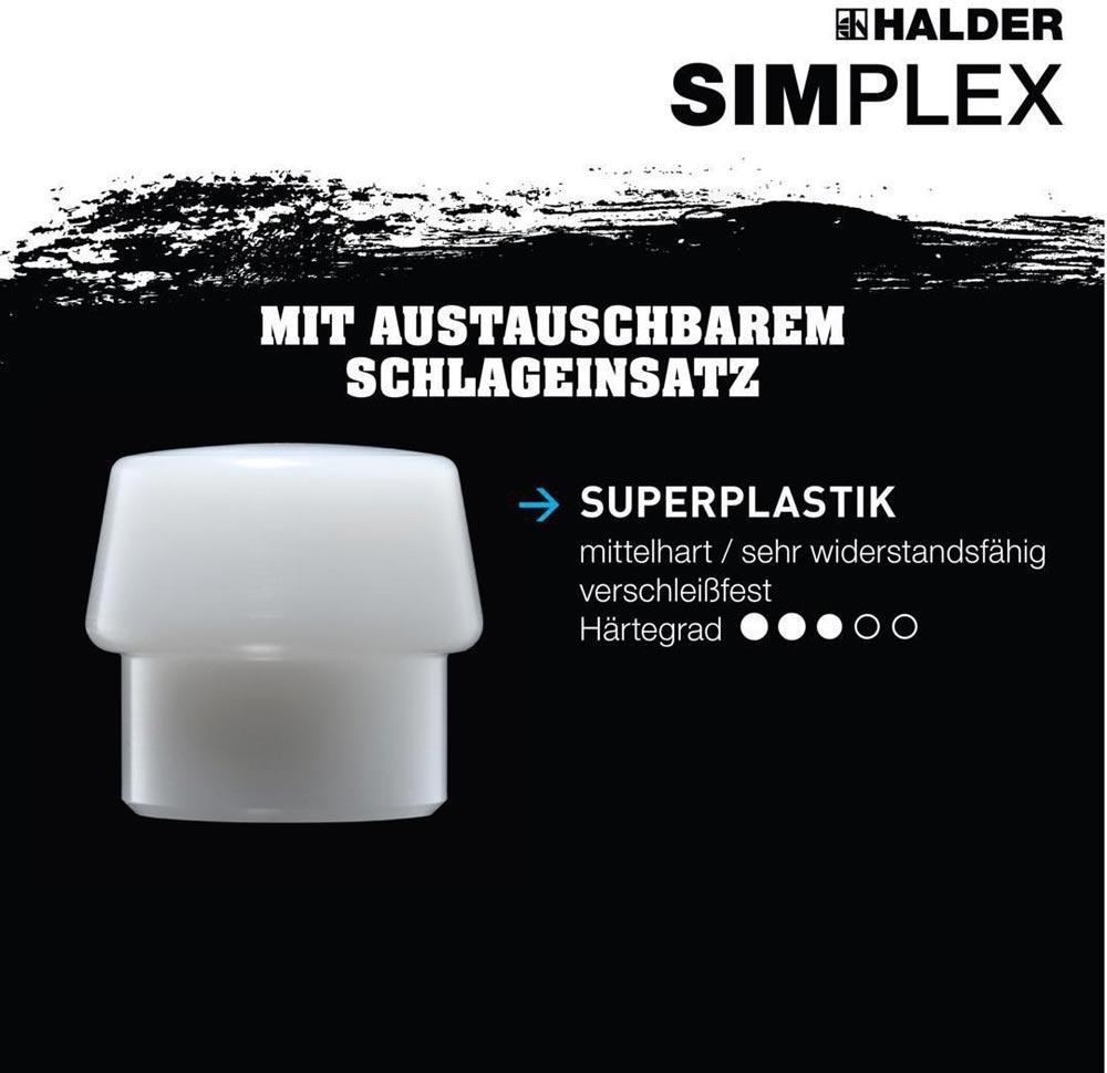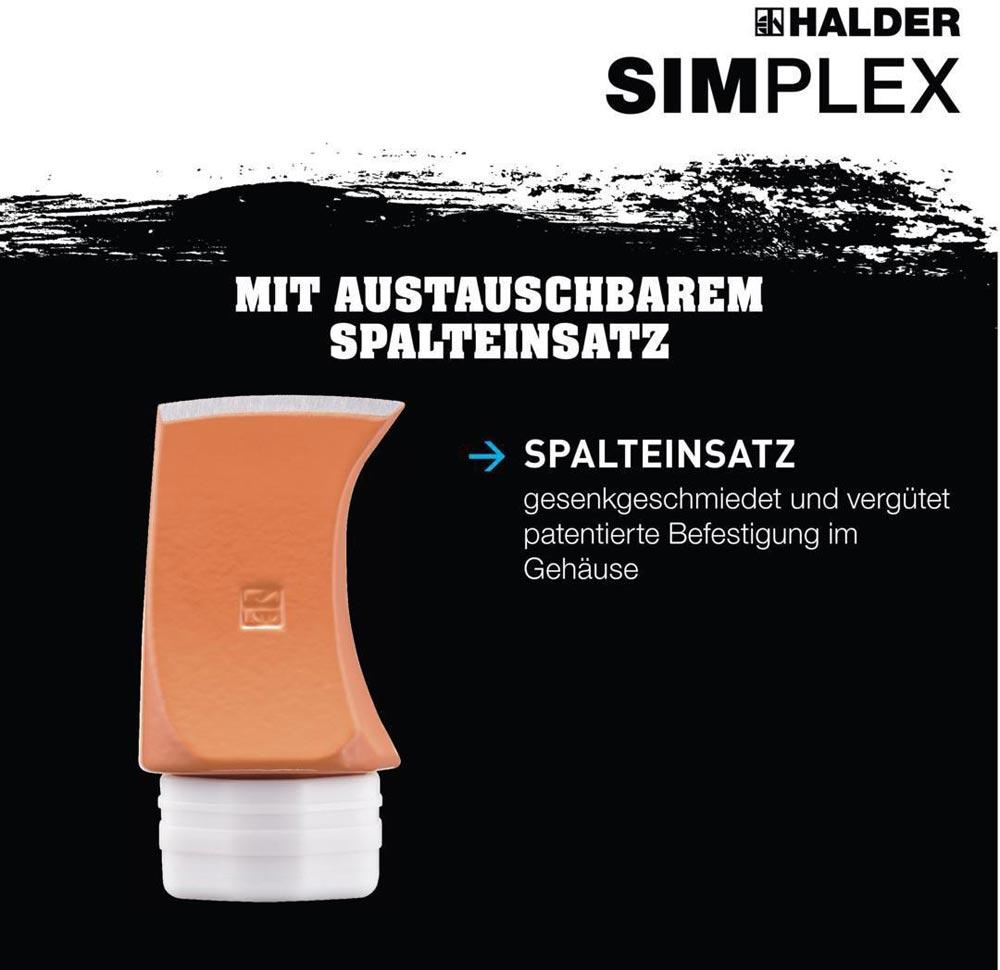 Der SIMPLEX-Spalthammer von Halder vereint zwei Werkzeuge in Einem · einen Spalthammer und einen Schonhammer in absoluter Profiqualität und bietet somit eine erhebliche Kostenersparnis gegenüber dem Einzelkauf. Die hohe Produktqualität ist vom Kuratorium für Waldarbeit und Forsttechnik (KWF) attestiert. Der aus hochwertigem Carbonstahl geschmiedete Spalteinsatz sorgt aufgrund seiner Wendenase für eine extrem gute Spaltwirkung. Diese wird durch 4.100g Gesamtgewicht und eine hohe Kopflastigkeit zusätzlich unterstützt. Der Superplastik-Einsatz mit D60mm ist ein mittelharter Kunststoff-Einsatz aus extrudiertem · extrem homogenem Material. Im Vergleich zu gespritzten Plastik-Einsätzen ist er dadurch wesentlich verschleißfester und widerstandsfähiger. Durch den Einsatz dieser Schonseite bei Keilarbeiten wird die Verletzungsgefahr durch Metallsplitter komplett vermieden · Kunststoff- und Aluminiumkeile haben eine wesentlich höhere Lebensdauer. Das Gehäuse aus Temperguss besitzt eine integrierte Stielschutzhülse · die für eine hohe Bruchsicherheit sorgt. Der langfaserige · sehr stabile Hickory-Stiel ist lackiert und ergonomisch geformt. Der Lederschneidschutz schützt beim Transport vor Verletzungen. Gemäß dem cleveren SIMPLEX-Prinzip sind alle Komponenten austauschbar und nachrüstbar. Dies schont nicht nur den Geldbeutel · sondern auch Ressourcen. Produktmerkmale: 2 Werkzeuge in 1: Spalthammer plus Schonhammer · eine erhebliche Kostenersparnis gegenüber dem Einzelkauf. Aus hochwertigem Carbonstahl geschmiedeter Spalteinsatz sorgt aufgrund seiner Wendenase für extrem gute Spaltwirkung. Keine Verletzungsgefahr bei Keilarbeiten durch Metallsplitter aufgrund des Superplastik-Einsatzes in D60mm (weiß · mittelhart · sehr widerstandsfähig). Wesentlich längere Lebensdauer von Kunststoff- und Aluminiumkeilen. Schonendes Einschlagen von Holzpfählen. Gehäuse aus Temperguss mit integrierter Stielschutzhülse und hoher Bruchsicherheit. Langfaseriger · sehr stabiler Hickory-Stiel · lackiert und ergonomisch geformt. Alle Teile sind austauschbar / nachrüstbar · somit sehr wirtschaftlich und Ressourcen schonend. Inkl. Lederschneidschutz. 4.100g Gesamtgewicht. Anwendungsgebiete Motormanuelle Holzernte · sicheres und materialschonendes Einschlagen von Stahlkeilen mit Schoneinsatz · Spalten von Meterholz · Keilarbeiten in der Fällung · schonendes Einschlagen von Holzpfählen · Garten-/Landschaftsbau Werkstoff Stiel Hickory Schlageinsatz 1 Spalteinsatz aus hochwertigem Carbonstahl · gesenkgeschmiedet und vergütet · mit Wendenase inkl. Kunststoffhülse inkl. Lederschneidschutz Schlageinsatz 2 Superplastik · weiß mittelhart sehr widerstandsfähig verschleißfest Gehäuse Temperguss Montage In den SIMPLEX-Spalthammer darf nur der Superplastik-Einsatz 3207.060 montiert werden. Spalteinsatz 3210.160 darf nur in Tempergussgehäuse 3011.160 montiert werden! · Ersatz-Superplastik-Einsätze siehe Art.-Nr. 455693