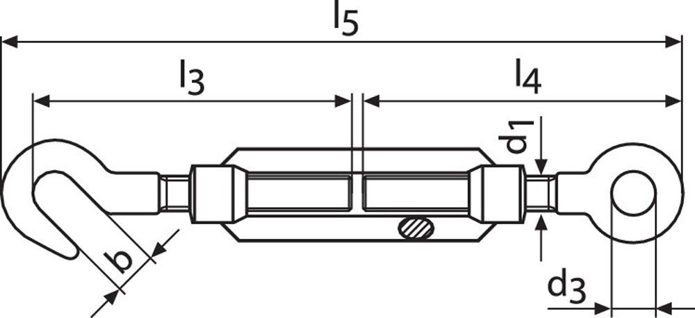Produktinformationen "Spannschloss DIN 1480 M16 Länge 320 - 430 mm mit Haken und Öse galvanisch verzinkt"