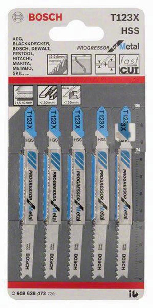 Stichsägeblatt T 123 X Gesamtlänge 100 mm Zahnteilung 1,2-2,6 mm HSS 5 Stück / Karte