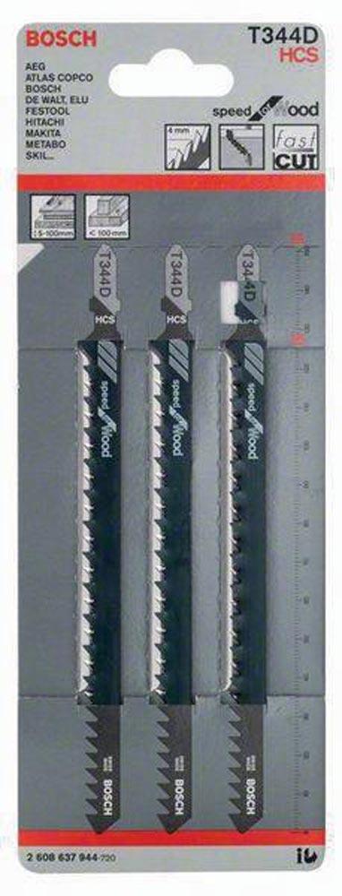 Stichsägeblatt T 344 D Gesamtlänge 152 mm Zahnteilung 4 mm HCS 3 Stück / Karte