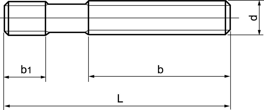 gerolltes Gewinde · M6 bis M12 vergütet auf Festigkeitsklasse 10.9, M14 bis M42 vergütet auf Festigkeitsklasse 8.8 · speziell für Spannzwecke entwickelte Stiftschrauben sind in der Längenabstufung den Normzahlen angepasst