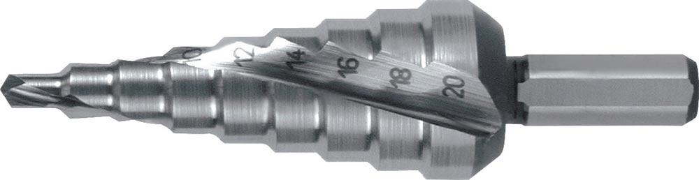 Produktinformationen "Stufenbohrer Bohrbereich 4-20 mm HSS spiralgenutet Schneidenanzahl 2 Stufenanzahl 9"