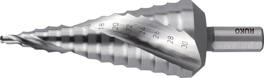 Stufenbohrer Bohrbereich 4 - 30 mm HSS-Co5 spiralgenutet Schneidenanzahl 2 Stufenanzahl 14