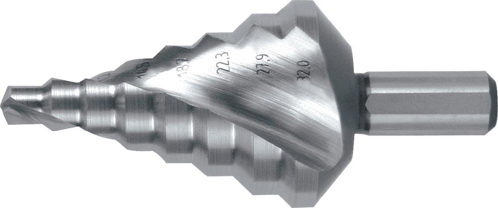 Stufenbohrer Bohrbereich 6-32 mm HSS spiralgenutet Schneidenanzahl 2 Stufenanzahl 8