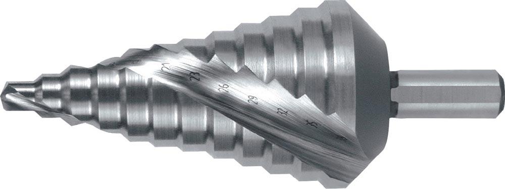 Produktinformationen "Stufenbohrer Bohrbereich 6-38 mm HSS spiralgenutet Schneidenanzahl 2 Stufenanzahl 12"