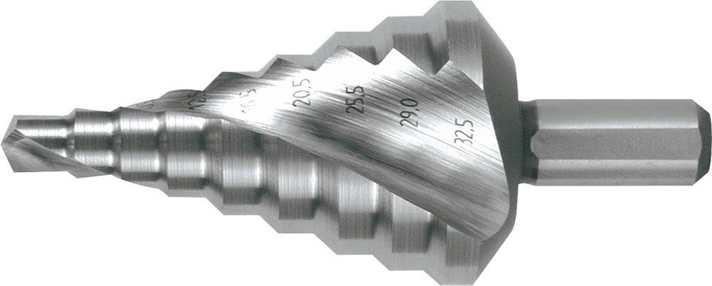 Stufenbohrer Bohrbereich 6,5 - 32,5 mm HSS spiralgenutet Schneidenanzahl 2 Stufenanzahl 9