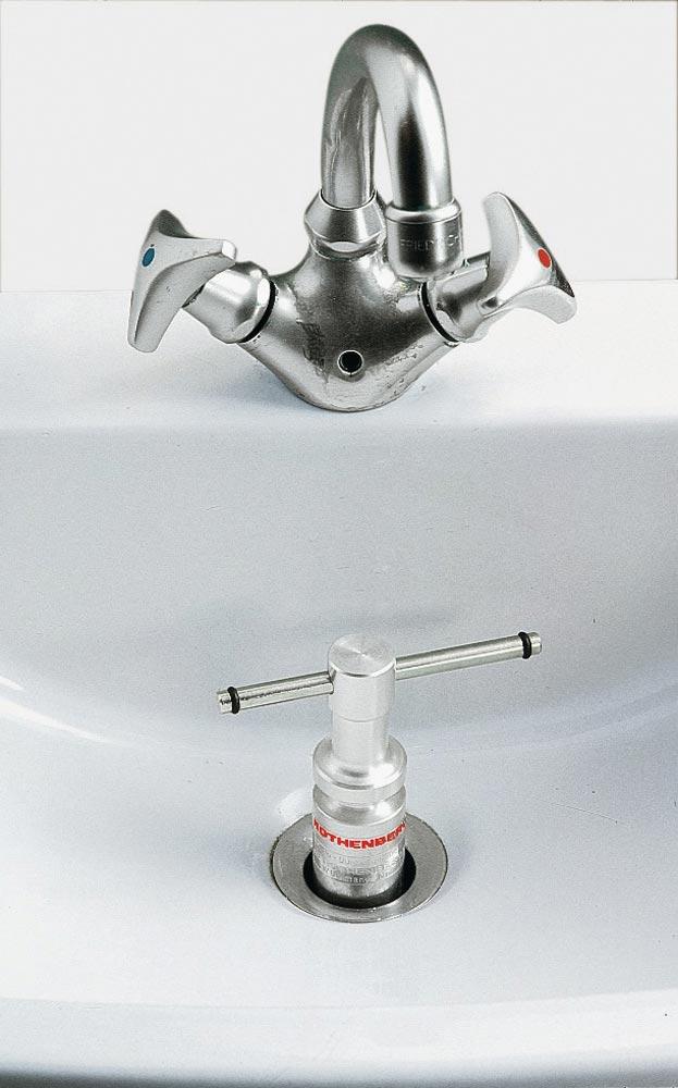 schnelles und problemloses Arbeiten bei der Montage von Badewannen, Waschbecken und Spülen · von unten und oben einsetzbar · mit 2 gegenüberliegenden, federnd gelagerten Arretierungsnocken sowie Halter mit Quergriff · Adapter mit Drehkreuz für Dusch- und Badewannen (Sonderzubehör) · durch Einstecken sofort drehfest · RO-QUICK Ventil-Einschraubschlüssel