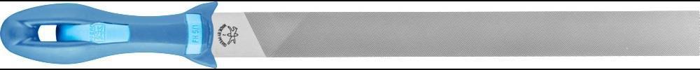 flachstumpf · mit Ergonomie-Feilenheft · Form A · rechteckige Feile mit Hieb auf drei Seiten · eine Seite ungehauen · zur Bearbeitung rechtwinkliger Geometrien · auch für Bronze, Kupfer, Messing und Zink geeignet