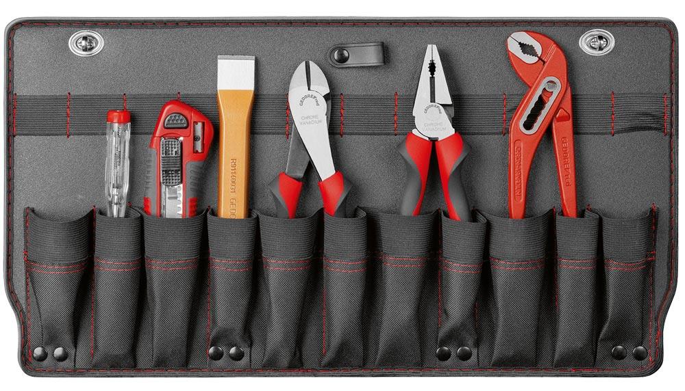 vollständiges Handwerker-Sortiment für Schrauben, Lösen, Schneiden, Messen und viele weitere Aufgaben · ausgestattet mit 2 leichtgängigen Rollen und einrastendem Teleskopgriff