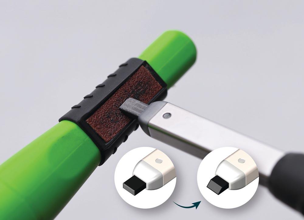 automatischer Minenvorschub auf Knopfdruck · nachfüllbar · für Rechteck-Minen 2 x 5 mm Querschnitt · kein Anspitzen notwendig · integrierter Taschenclip · im Köcherschoner · integrierter Minenschärfer · für feinste Markierungen - durch viele verschiedene Minensets vielseitig einsetzbar (Sonderzubehör)