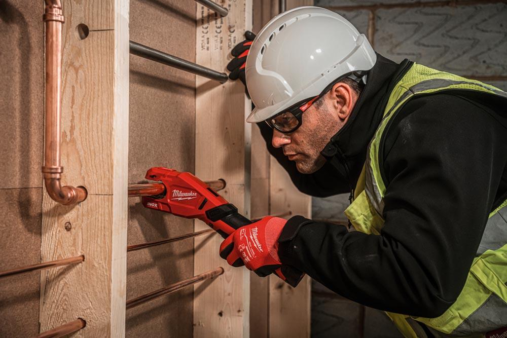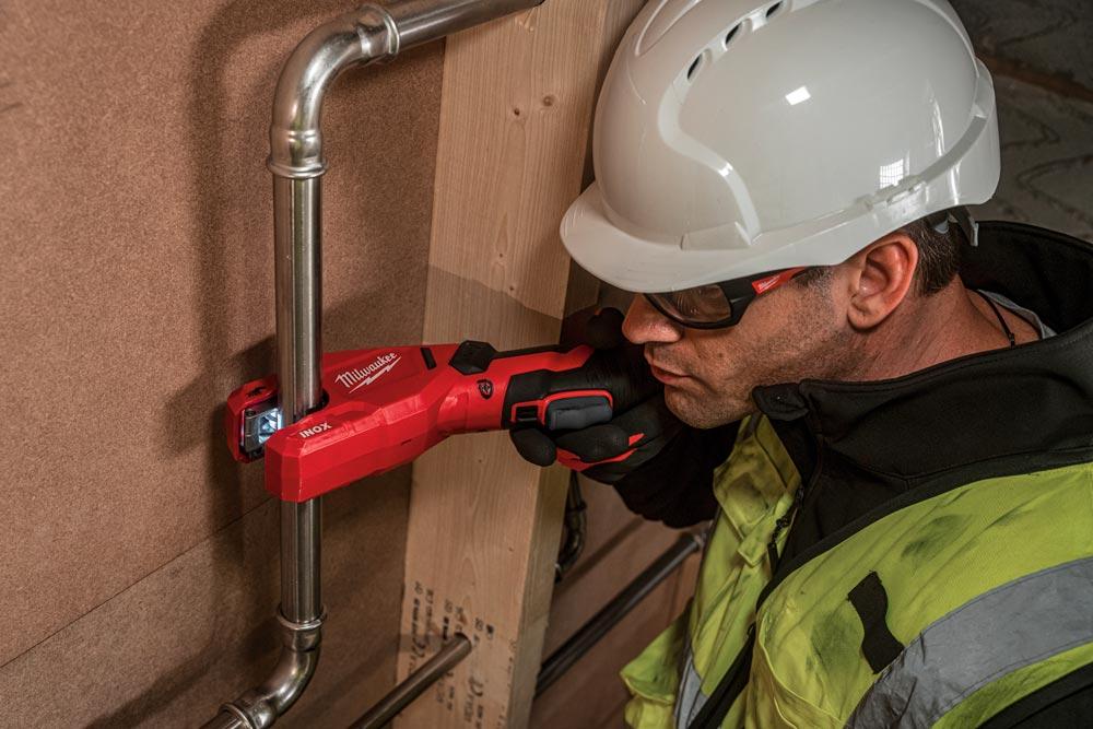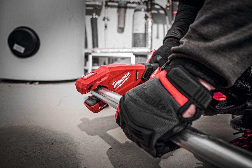 Ausführung: Akku-Rohrschneider zum Schneiden unter engsten Platzverhälnissen ∙ Schneidräder passen sich automatisch der Rohrgröße an ∙ Rostfreier Schneidkopf ∙ Sichtfenster am Schneidmechanismus ∙ Integrierte LED-Beleuchtung ∙ Akku-Ladestandsanzeige ∙ Schneidleistung: Edelstahl/Kupfer/C-Stahl-Rohre Ø 12-28 mm ∙ Bis zu 90 Schnitte in 15 mm Edelstahl mit einem M12™ 2,0-Ah-Akkupack ∙ 40 mm Wandabstand
