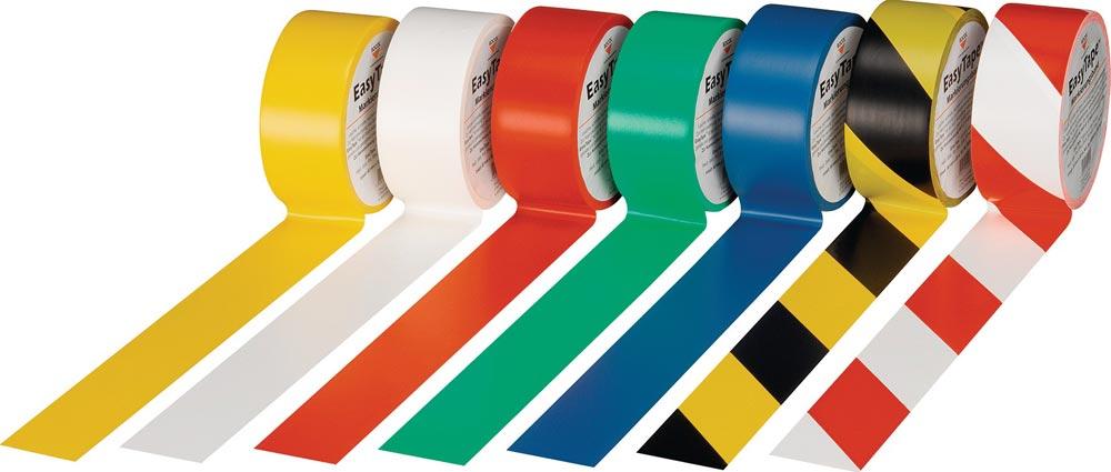 aus robustem, widerstandsfähigen PVC · hoch belastbar, für gerade und gebogene Linien · rückstandsfreie Entfernung · für eine saubere, langfristige Kennzeichnung für den Innen- und Außenbereich · für Untergründe wie Beton, Stein, Holz, Keramikkacheln, Metall, PVC, Kunststoffe usw. · Varianten rot/weiß und schwarz/gelb: rechtsweisend