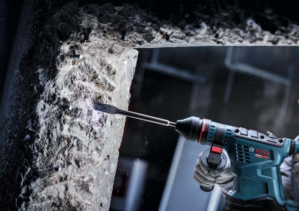 Überragende Lebensdauer dank Bosch Carbide Technology ∙ Hohe Lebensdauer beim Meißeln von Beton ∙ Selbstschärfendes Blatt für langfristige Leistung ∙ Geripptes Design zum effizienten Aufbrechen des Werkstoffs ∙ RTec-Element sorgt für einen höheren Materialabtrag