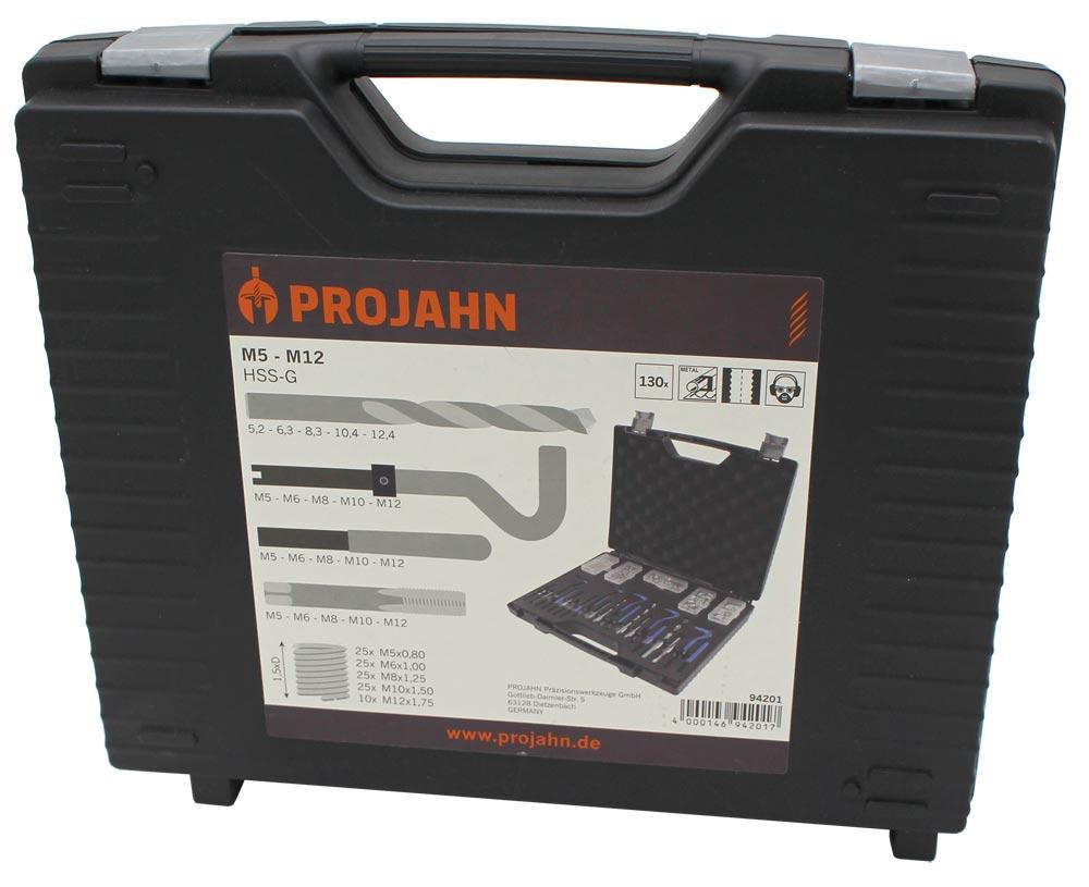 Lieferumfang: Mit Spiralbohrern HSS-G, Gewindebohrer HSS-G, Einbauwerkzeugen, Zapfenbrechern und je 25 St. Gewindeeinsätze 1,5 x D (M12 je 10 St.) robustem Kunststoff-Koffer