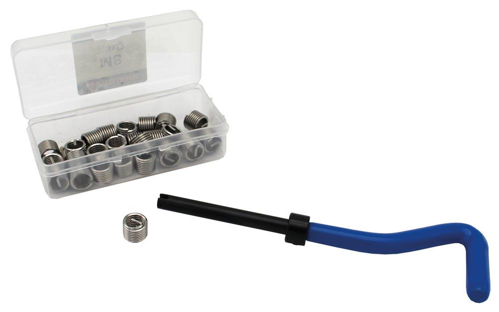 Praktische Satz-Zusammenstellung zur Reparatur und Instandsetzung von Gewinden ∙ Komplett mit Spiralbohrern HSS-G, Gewindebohrer HSS-G, Einbauwerkzeugen, Zapfenbrechern und je 25 St. Gewindeeinsätze 1,5 x D (M12 je 10 St.)