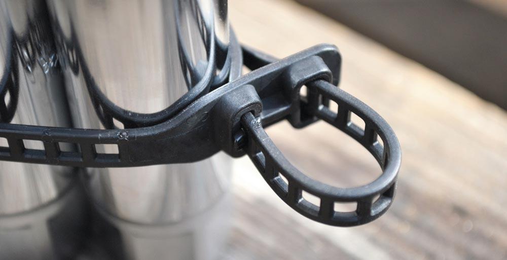 lösbar · aus weichem, reißfestem thermoplastischem Polyurethan · seine UV- und Witterungsbeständigkeit ermöglicht eine schonende Bündelung · Brandausbreitung entspricht UL94 HB · Betriebstemperatur - 40 °C bis + 85 °C