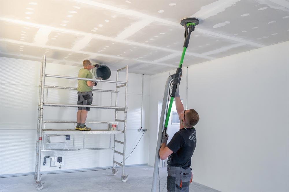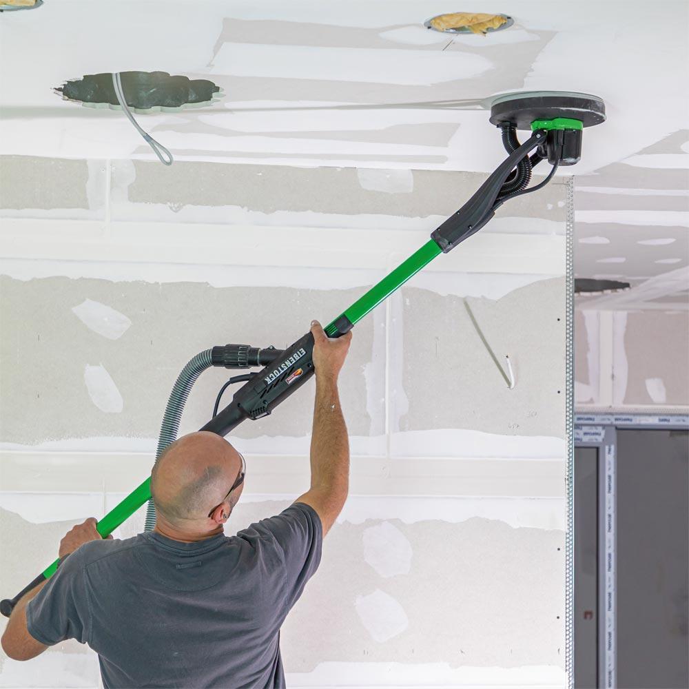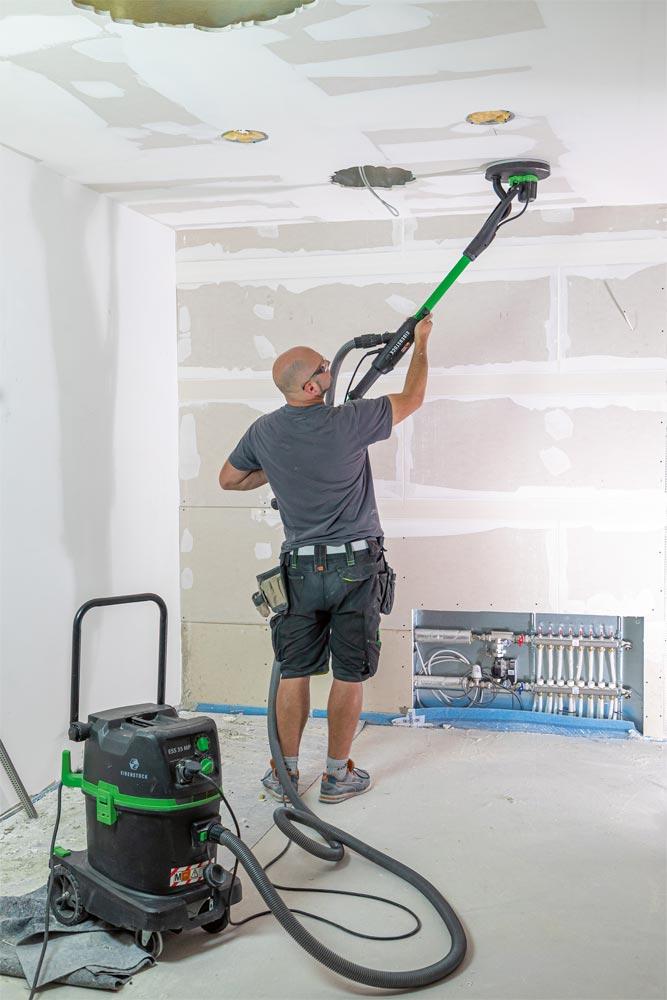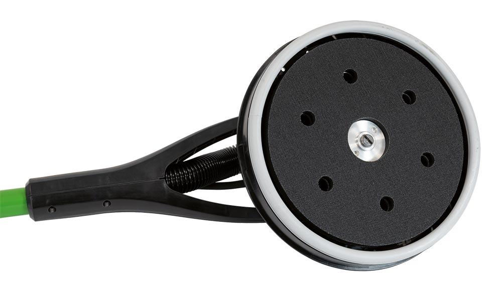 Leichter, leistungsstarker Flächenschleifer mit bürstenlosem Motor ∙ VacuGlide System: stufenlos regulierbare Ansaugkraft zur Anpassung der Abtragsleistung und besserer Führung des Schleifers auf der Oberfläche ∙ Stufenlose Drehzahleinstellung der mittels Stellrad ∙ Dichtlippe gegen Bürstenkranz für andere Schleifaufgaben austauschbar ∙ Schleifkopf um 180° drehbar zum Schleifen großer Flächen und Fugen ohne abzusetzen ∙ Effiziente Staubabsaugung über Haube und gelochten Schleifteller ∙ Saugschlaucharretierung verhindert unabsichtliches Lösen beim Schleifvorgang ∙ Variable Arbeitslänge durch werkzeuglos montierbare Verlängerung mit T-Griff