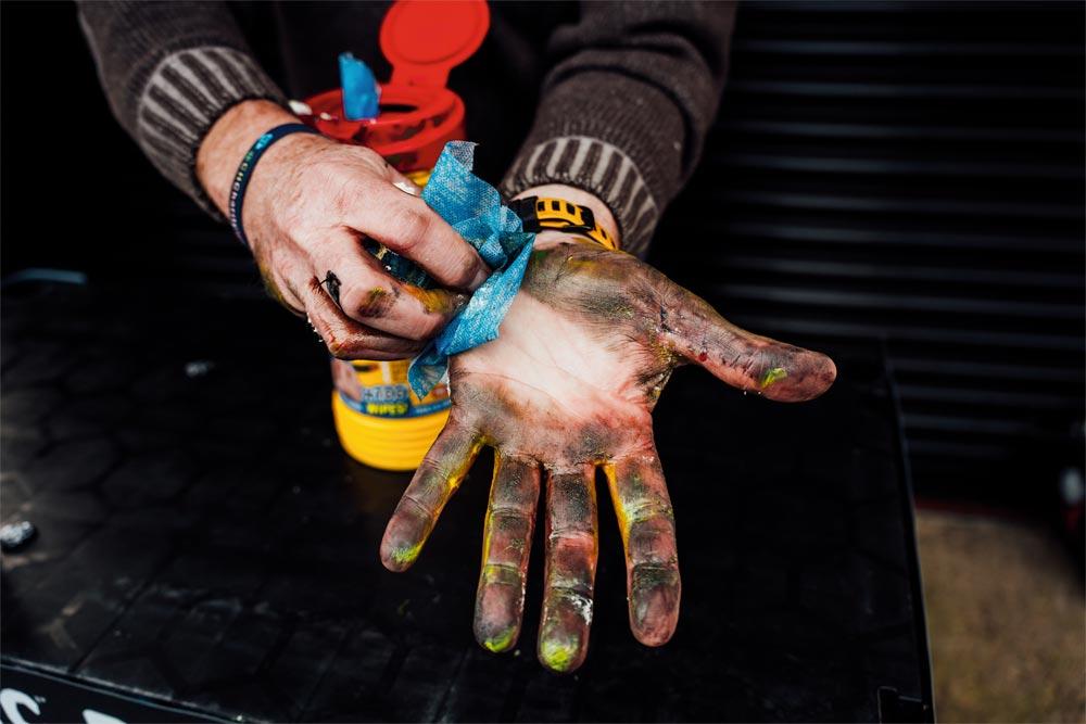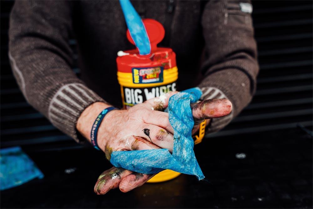 Doppelseitige Scheuer- und Reinigungstücher für schnellste und porentiefe Reinigung ∙ Rauhe Seite entfernt selbst hartnäckigste Verschmutzungen ∙ Weiche Seite saugt den Schmutz auf ∙ Aus Heavy-Duty Quad-Textil, nimmt 40% mehr Schmutz auf als herkömmlihe Tücher ∙ Dermatologisch getestet - frei von Parabenen, Phosphaten und Formaldehyd ∙ Frei von künstlichen Konservierungsstoffen ∙ Aloe Vera, Glyserin, Lanolin und Vitamin E Schützen und Pflegen die Haut ∙ Zum Entfernen von Farbe, PU-Schaum, Bitumen, Klebstoffe, Silikon, Öl, Fett und vieles mehr ∙ Dose á 100 Tücher