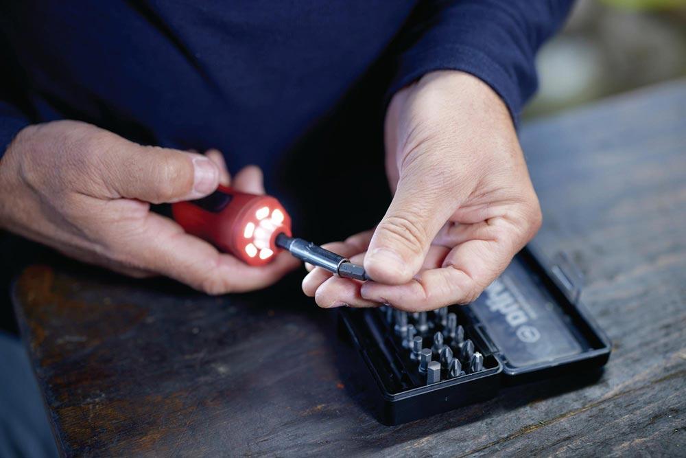 schnelles, einfaches Verschrauben · zwei Kraftstufen · 6 LEDs für schattenfreie Ausleuchtung · kann per Knopfdruck auf 1,0 Nm begrenzt werden