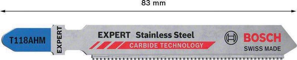Produktinformationen "Stichsägeblatt Stainless Steel T 118 AHM Gesamtlänge 83 mm Zahnteilung 1,1 mm Carbide 3 Stück / Karte"